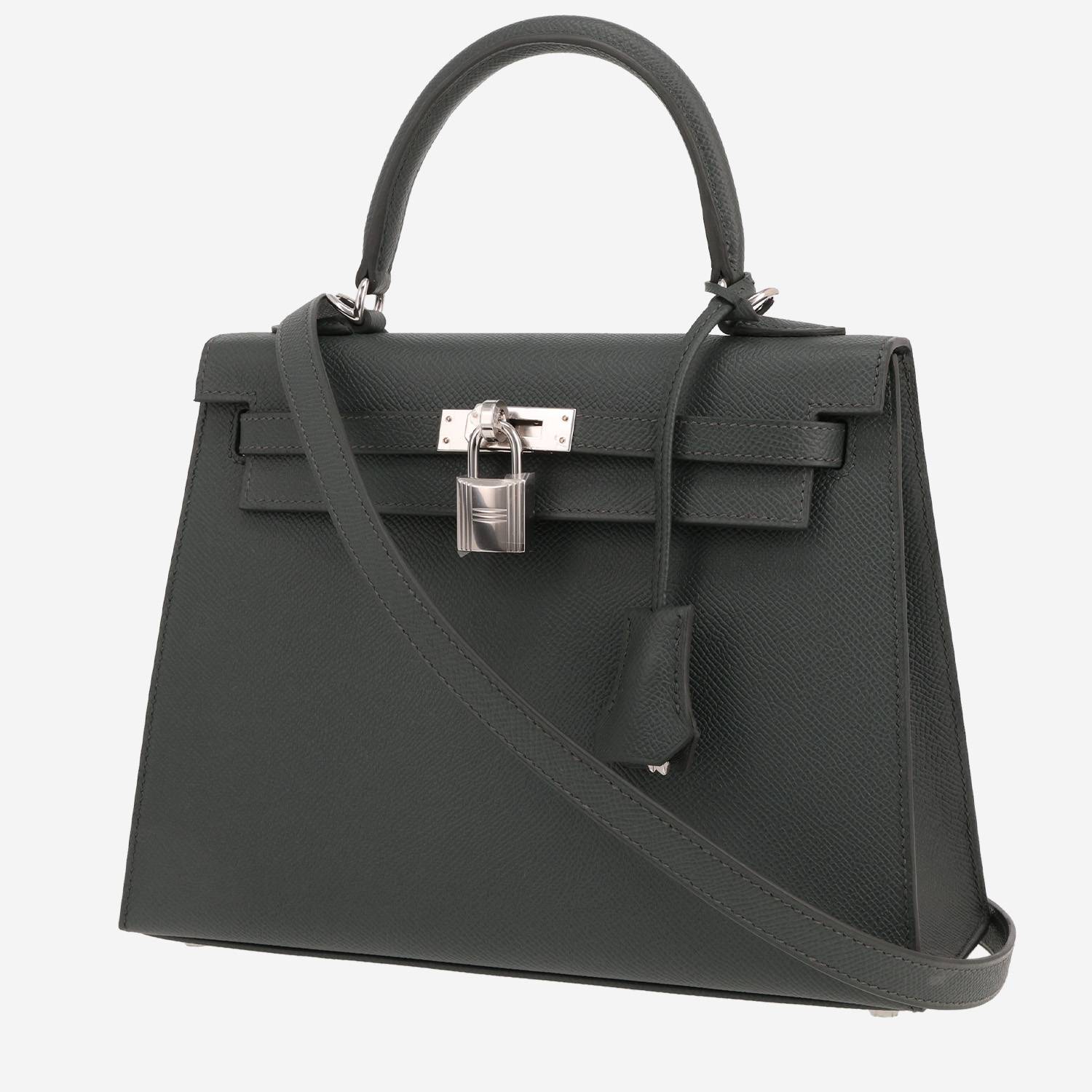 Sublime sac à main Hermès Kelly 25 cm en cuir epsom Vert Mangrove, garniture en métal palladié, poignée simple en cuir Vert Mangrove, anse bandoulière amovible en cuir Vert Mangrove permettant un porté main ou épaule.