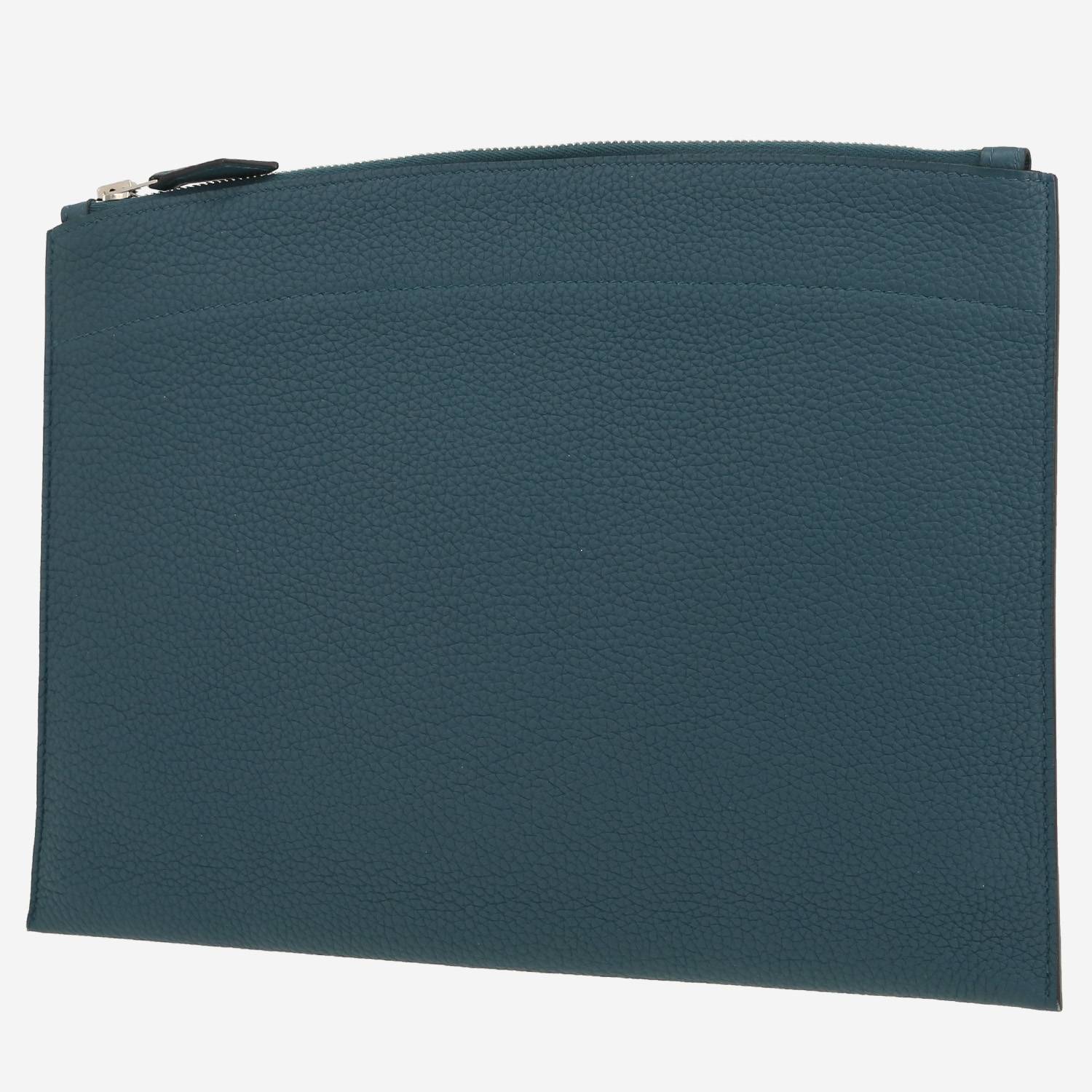 Superbe pochette Hermès en cuir togo Bleu Océan, garniture en métal palladié permettant un porté main.