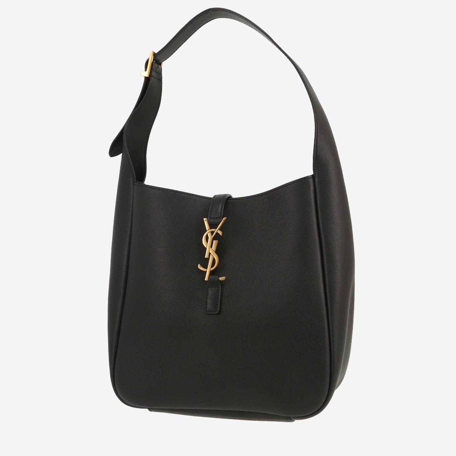 Sublime sac à main Saint Laurent 5 à 7 petit modèle en cuir noir, garniture en métal doré, une anse en cuir noir permettant un porté main ou épaule.