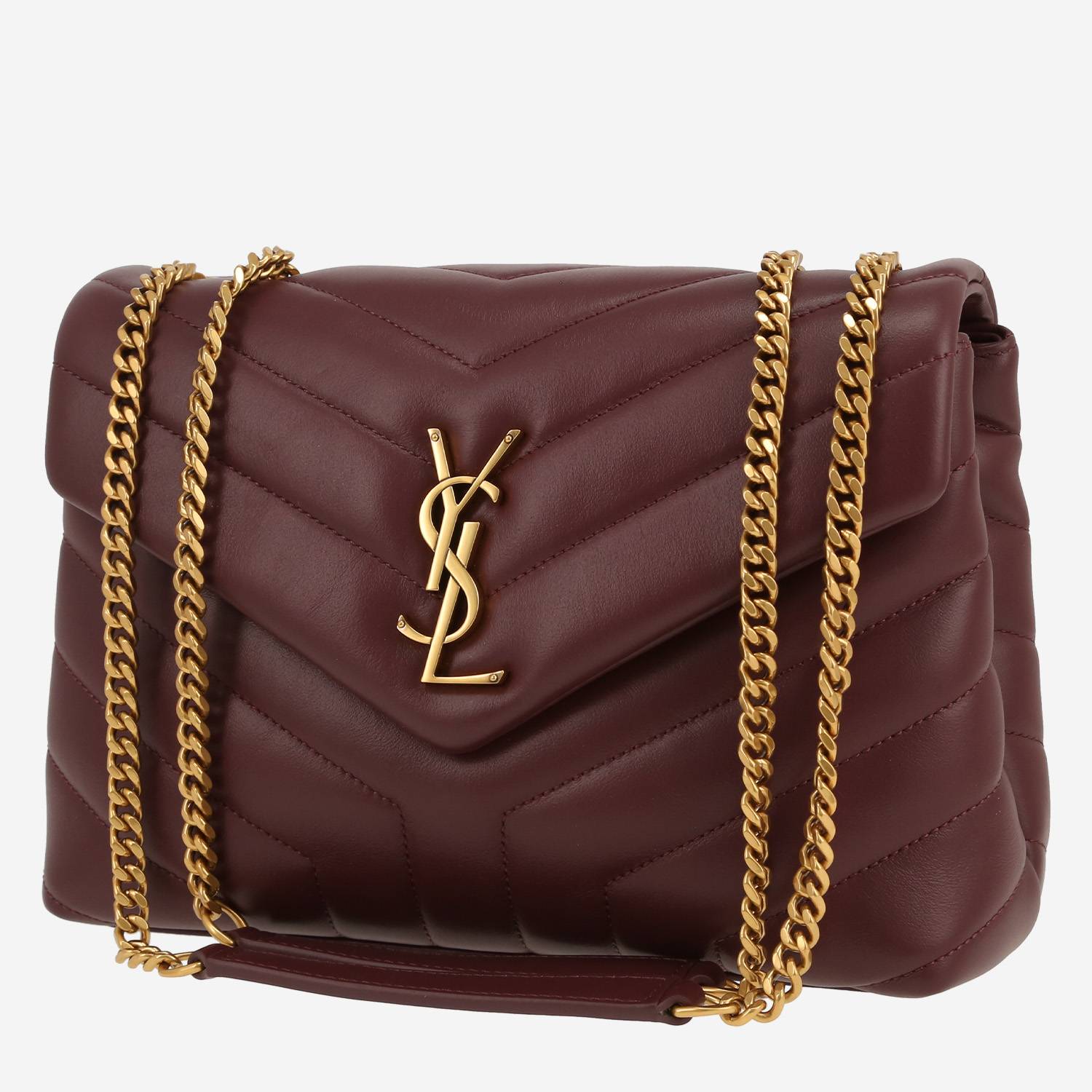 Magnifique sac bandoulière Saint Laurent Loulou petit modèle en cuir matelassé chevrons bordeaux, garniture en métal doré, double anse-chaine transformable en métal doré permettant un porté épaule ou bandoulière.