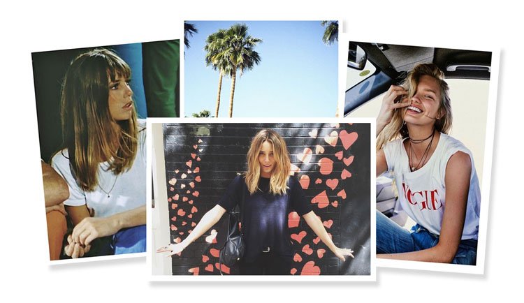 A fresh white t-shirt stolen from your boyfriend has an understated cool to it. Or cropped and tight black t-shirt makes an outright statement.