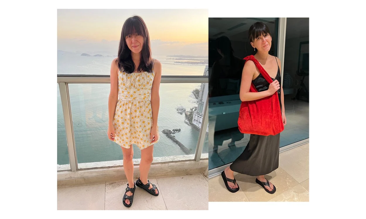 My after-ceremony wedding dress was accidentally ordered twice, so I have a spare Khaite Constance dress in Panamá and changed into it after dinner.