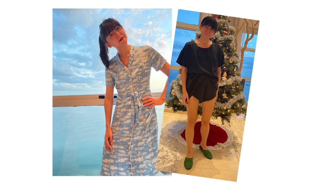 Sunday, Jan 2nd: Took it easy and lazy today in my Lunya set and a pair of slippers.